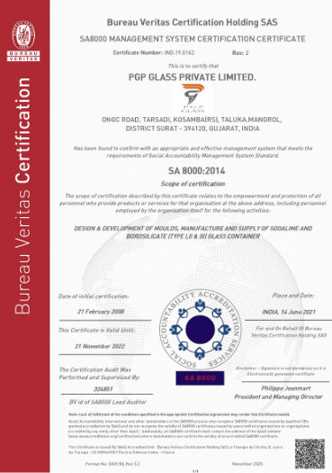 ISO15378 Certificate PGP glass private limited